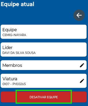 Para desativar a equipe, o agente deve realizar o seguinte procedimento.
