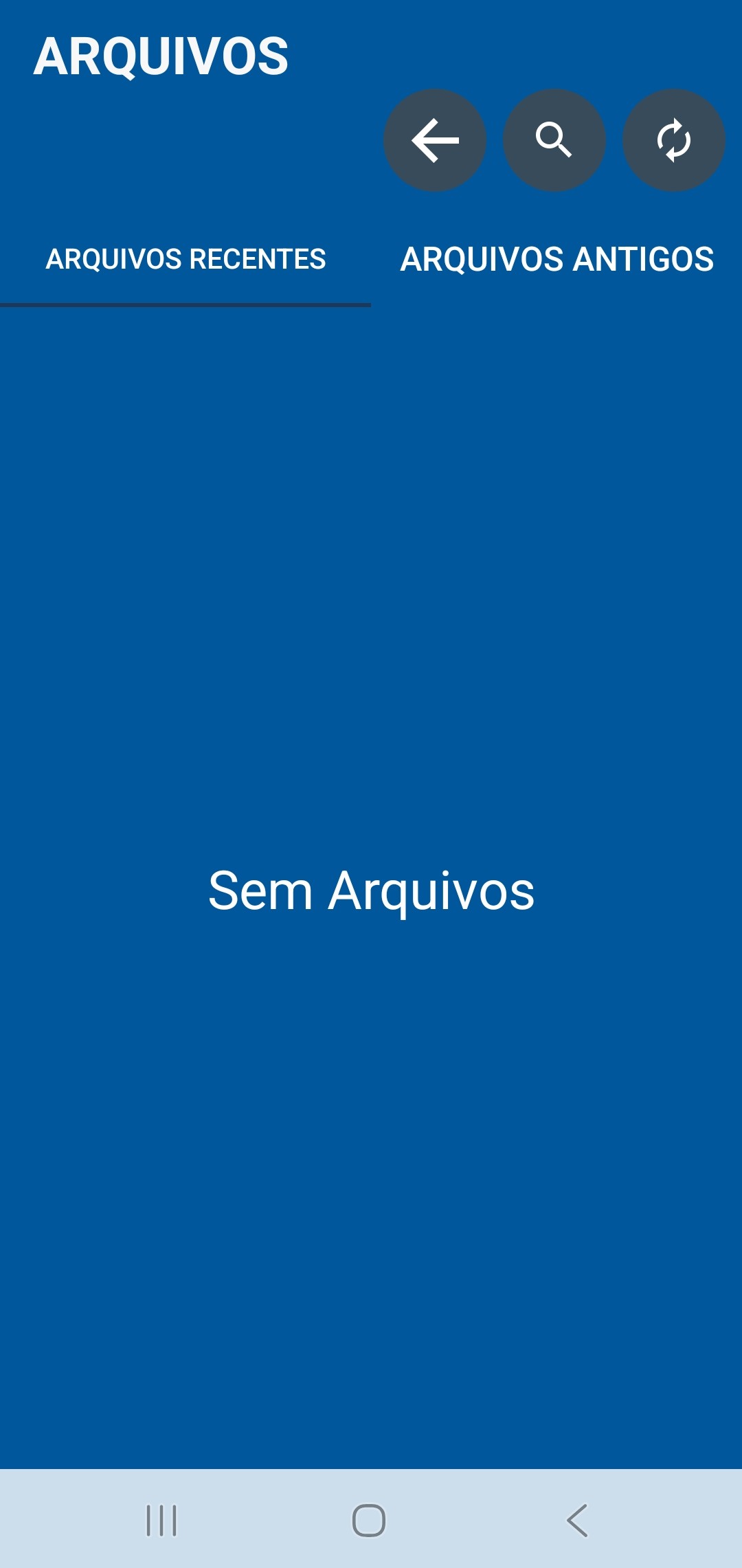 A imagem abaixo demonstra que, após a realização do procedimento, o aplicativo passa a exibir a mensagem “Sem Arquivos”, confirmando que todas as informações armazenadas localmente foram apagadas.