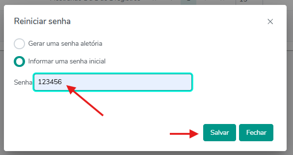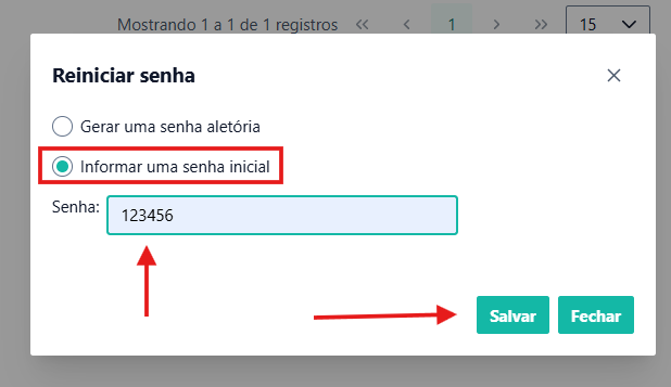 2. Selecione o botão "INFORMAR UMA SENHA INICIAL" , digite 123456 e clique em SALVAR.
