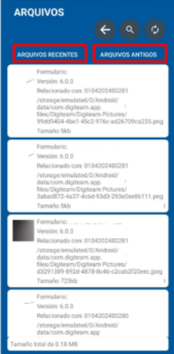 - Arquivos recentes (Aba esquerda) - Arquivos Antigos (Aba direita)