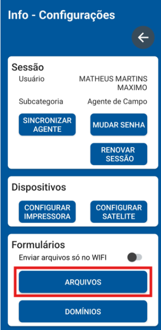 - Desça a tela até localizar o botão Arquivos 🔂. Clique nele.