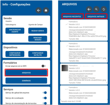 • FORMULÁRIOS > ARQUIVOS – acessa arquivos recentes ou antigos de serviços executados, como imagens e assinaturas