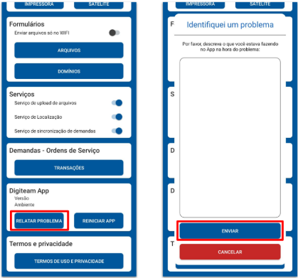 Envie-o e descreva o problema ao suporte Digiteam