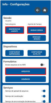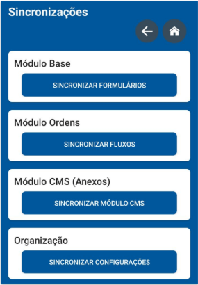 A tela de sincronização serve para atualizar as configurações do aplicativo: