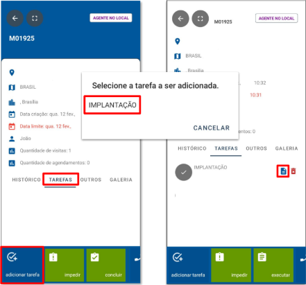 • É necessário preencher a tarefa de execução do serviço