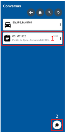 Para solicitar ajuda em uma OS, localize o botão indicado na imagem abaixo e selecione o contato que gostaria de acionar. Ao confirmar o usuário desejado, o Digiteam enviará uma mensagem automática informando os dados da OS que o agente de campo está solicitando ajuda e abrirá uma conversa para que ele possa descrever o problema.