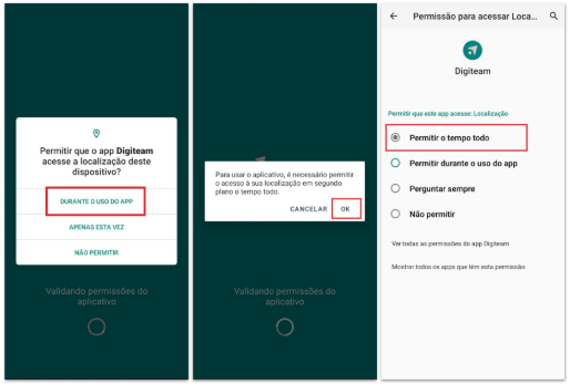 ⚠️ ATENÇÃO: O acesso à localização deve ser permitido o tempo todo, conforme mostrado ao lado.