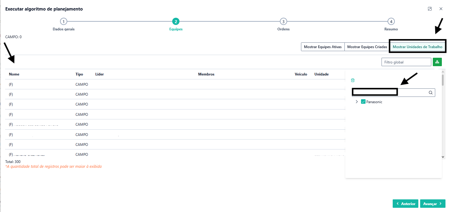 Na etapa de 'EQUIPES': essa é a parte na qual se seleciona as equipes que receberão os planejamentos. A seleção das equipes pode ser realizado de 3 modos: