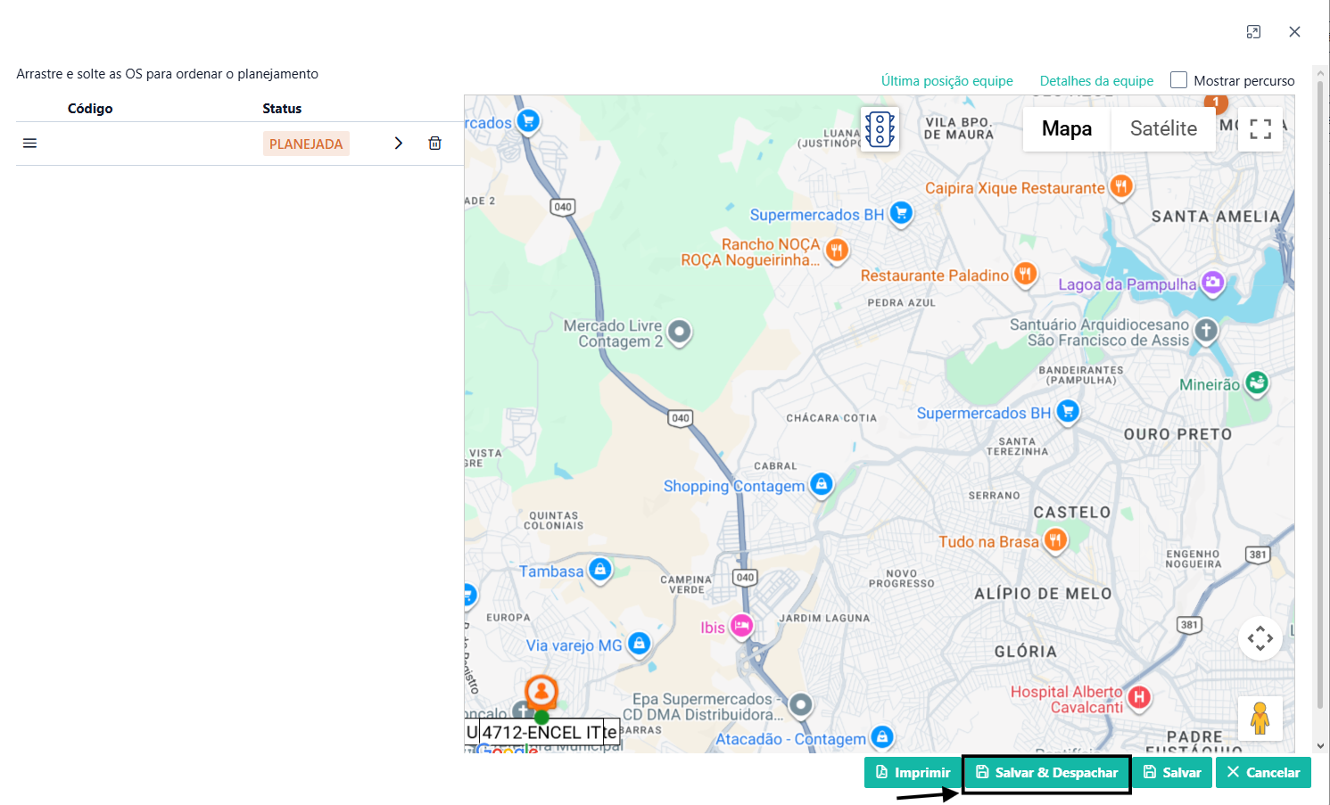 Você irá ver as OS's que foram planejadas para a equipe, para que possa aparecer no aplicativo do técnico no dia respectivo, ainda será necessário que clique em "SALVAR E DESPACHAR"