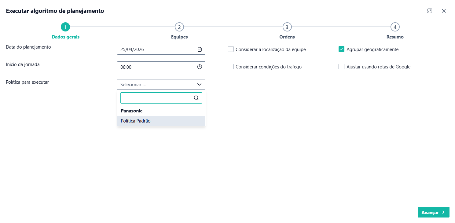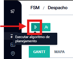 Acesse o algoritmo de planejamento no canto superior esquerdo da tela de despacho.